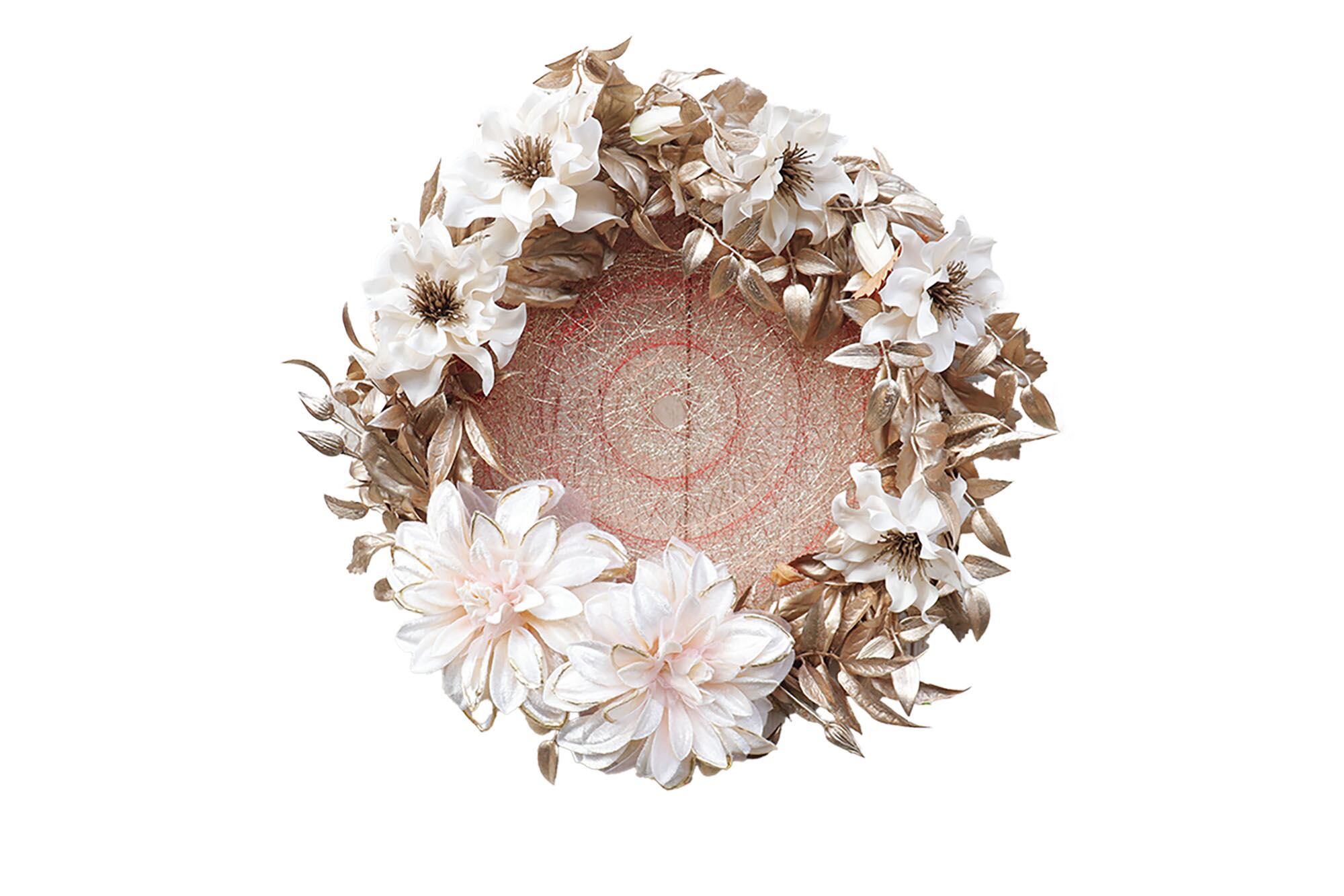 「クリアー!そして新たなスタート」を示し、糸かけ曼荼羅で「愛」、赤とピンクで「情熱」を表現。